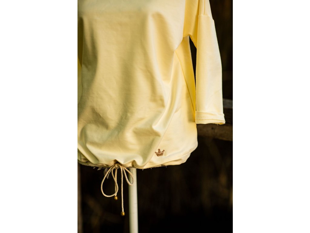Tenhle smetanový topík šitý z jemné lehké teplákoviny ti nesmí chybět v šatníku. Kousek bez vzoru zdobený jemnou korunkou se hodí jak ke kalhotům, tak sukni. V módním průmyslu jednoznačně nadčasový kousek! Ušili jsme ji v naší dílně z kvalitního bavlněné teplákoviny s příměsí elastanu. Tahle látka je prodyšná a drží tvar i po vícero vypráních.