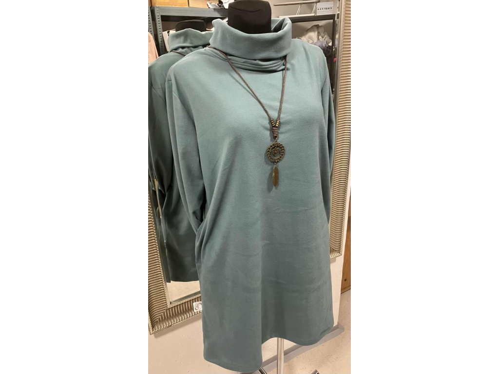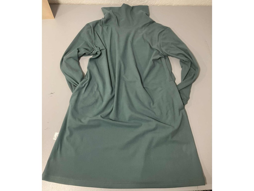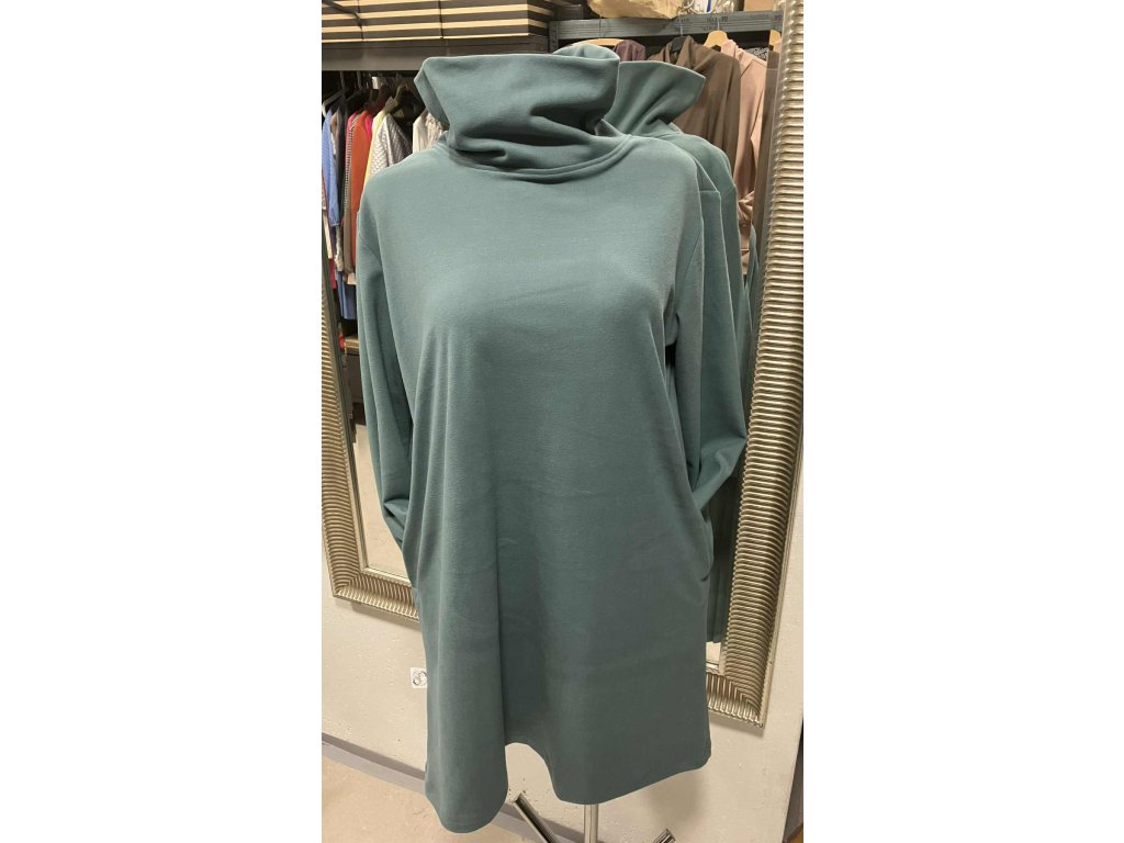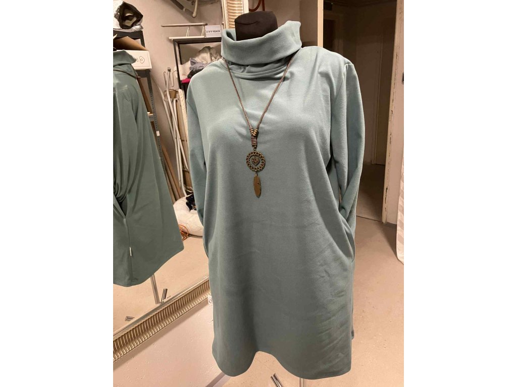 Petrolejově pastelové šaty s rolákem