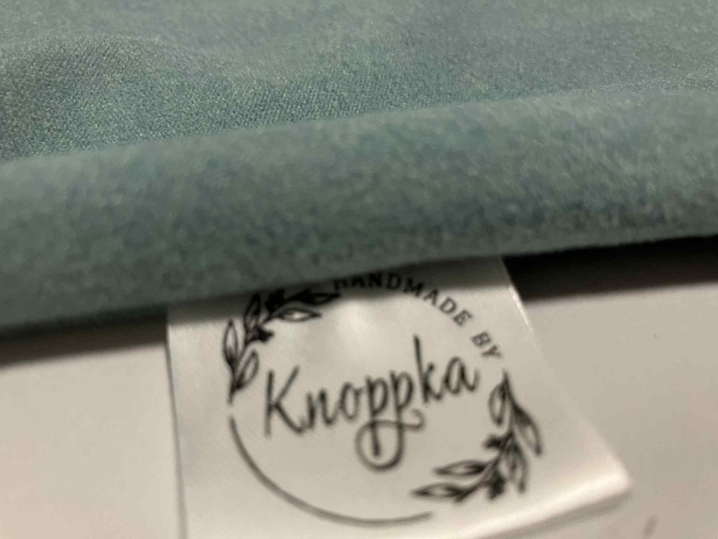 V bočním díle u šatů najdeš decentní štítek Knoppka – naše tiché poděkování za to, že si vybíráš pomalou módu, která dává smysl.